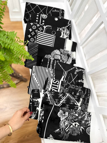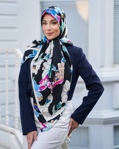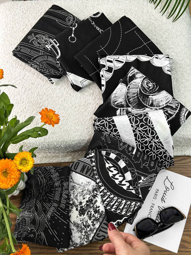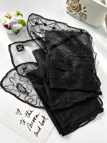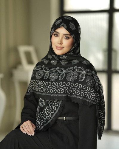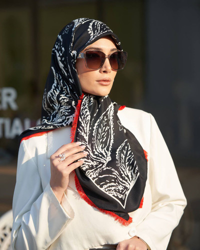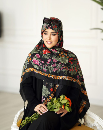 روسری نخی سیا اسکارف دست دوز چاپ خیس