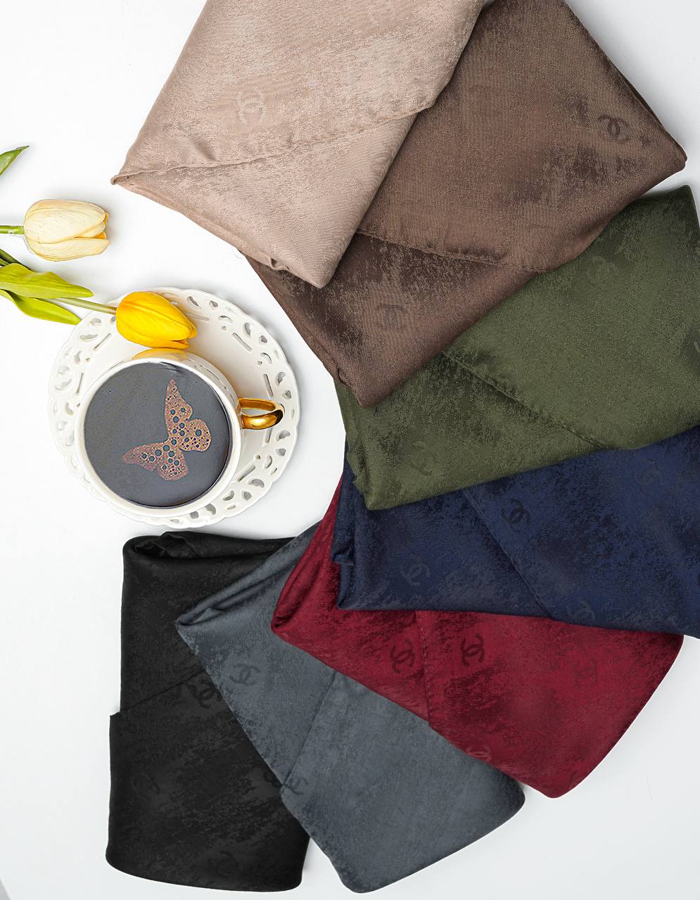 روسری ابریشم ژاکارد چرخدوز وارداتی
