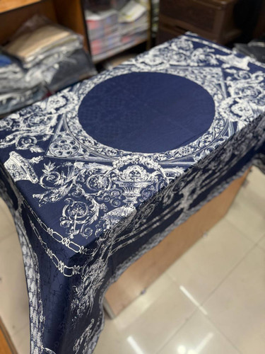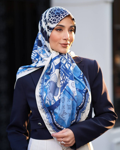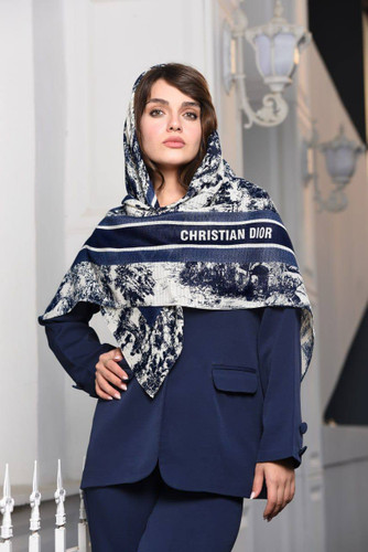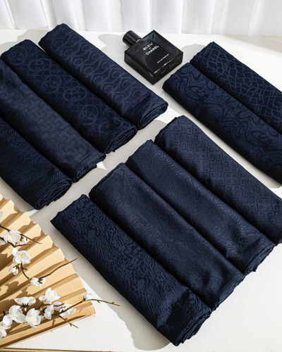 روسری ابریشم ژاکادد دست دوز سورمه ای