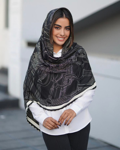 روسری نخی سیا اسکارف دست دوز چاپ خیس