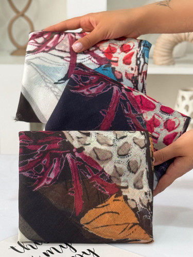 روسری نخ پاییزه دست دوز چاپ خیس قواره 125/فروش عمده