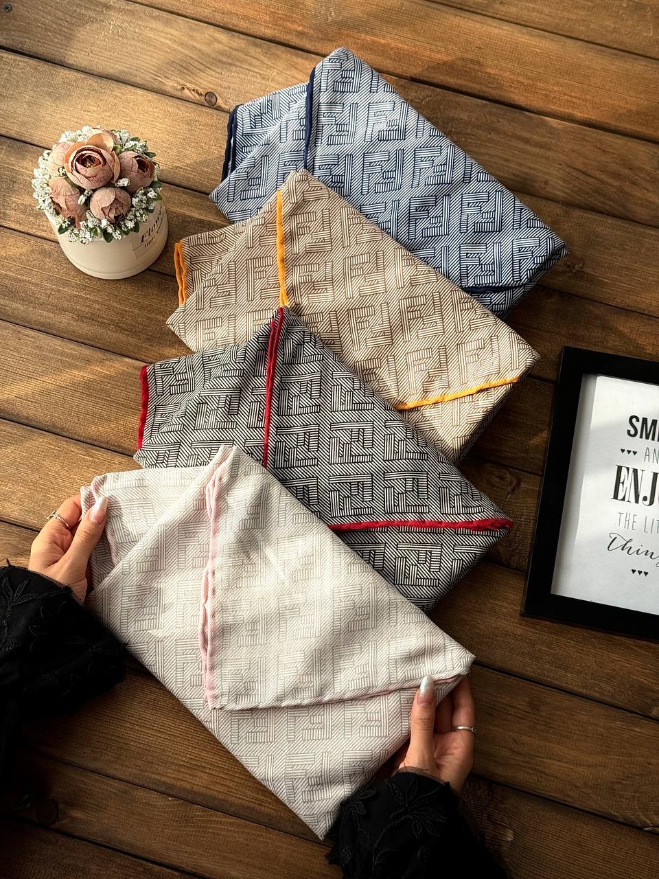 روسری ابریشم ژاکارد دست دور وارداتی /فروش عمده