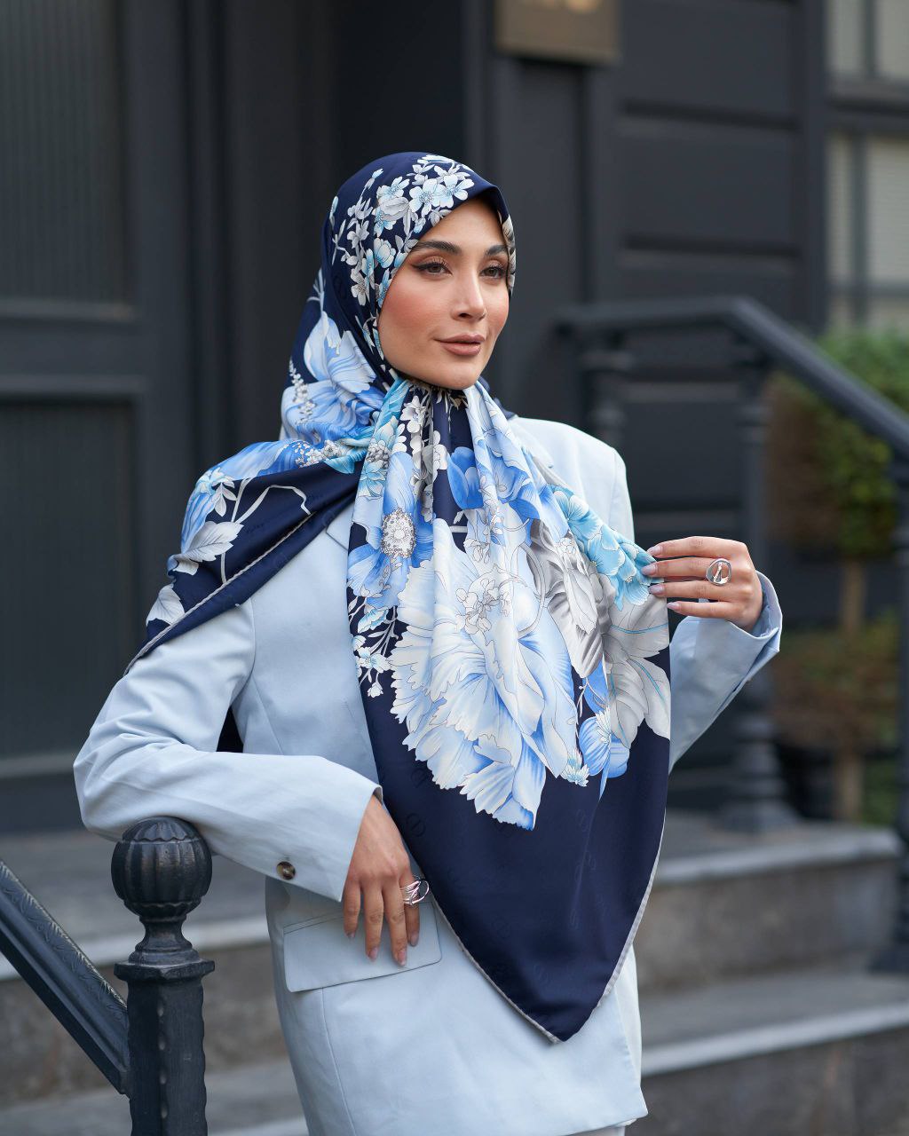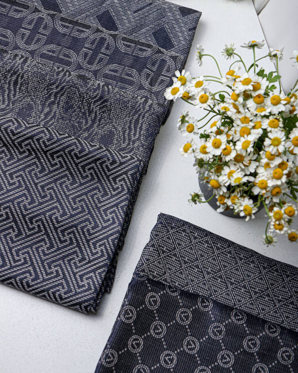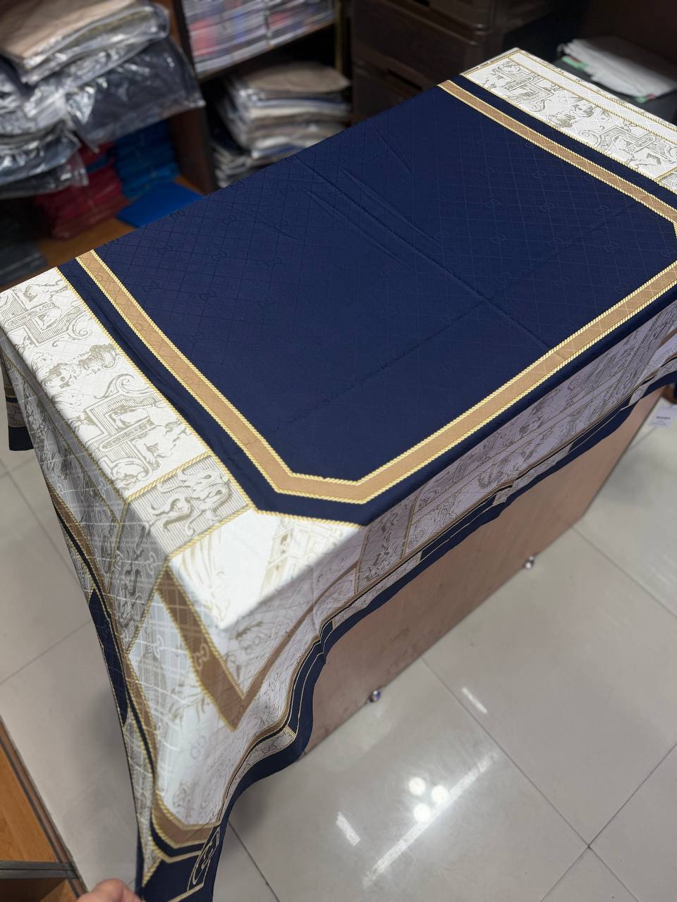 روسری ابریشم ژاکادد دست دوز سورمه ای
