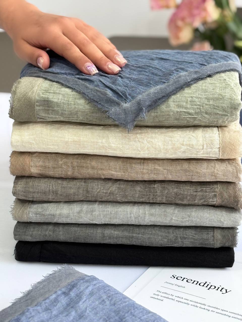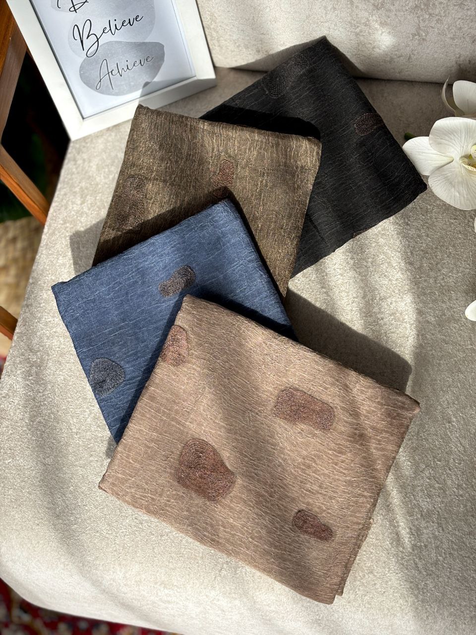 روسری نخ پاییزه دست دوز چاپ خیس قواره 125/فروش عمده