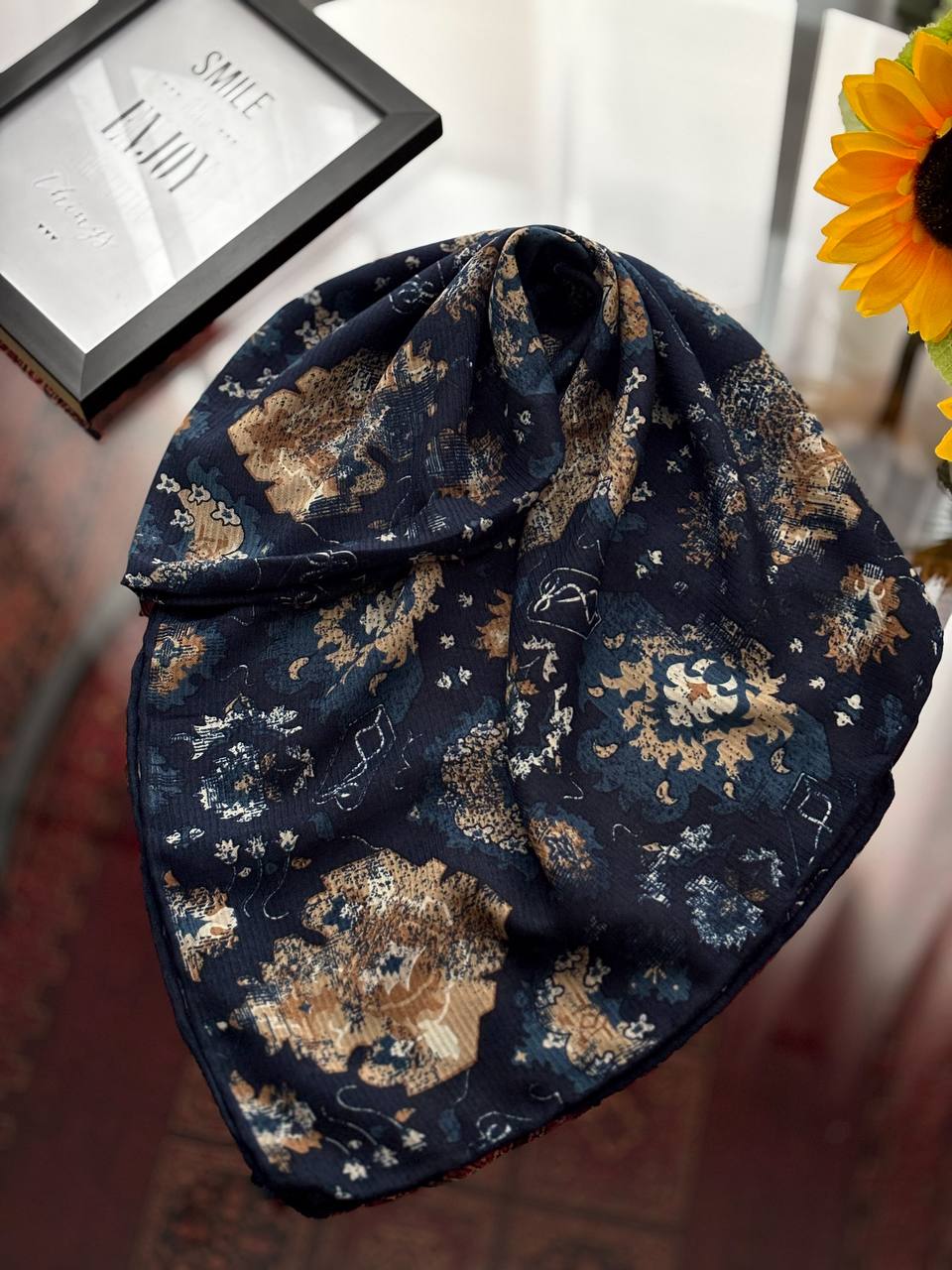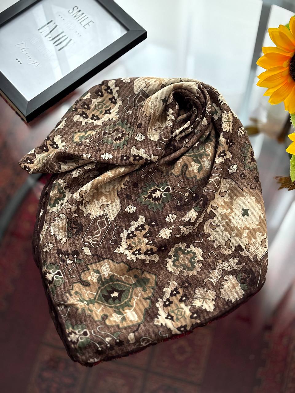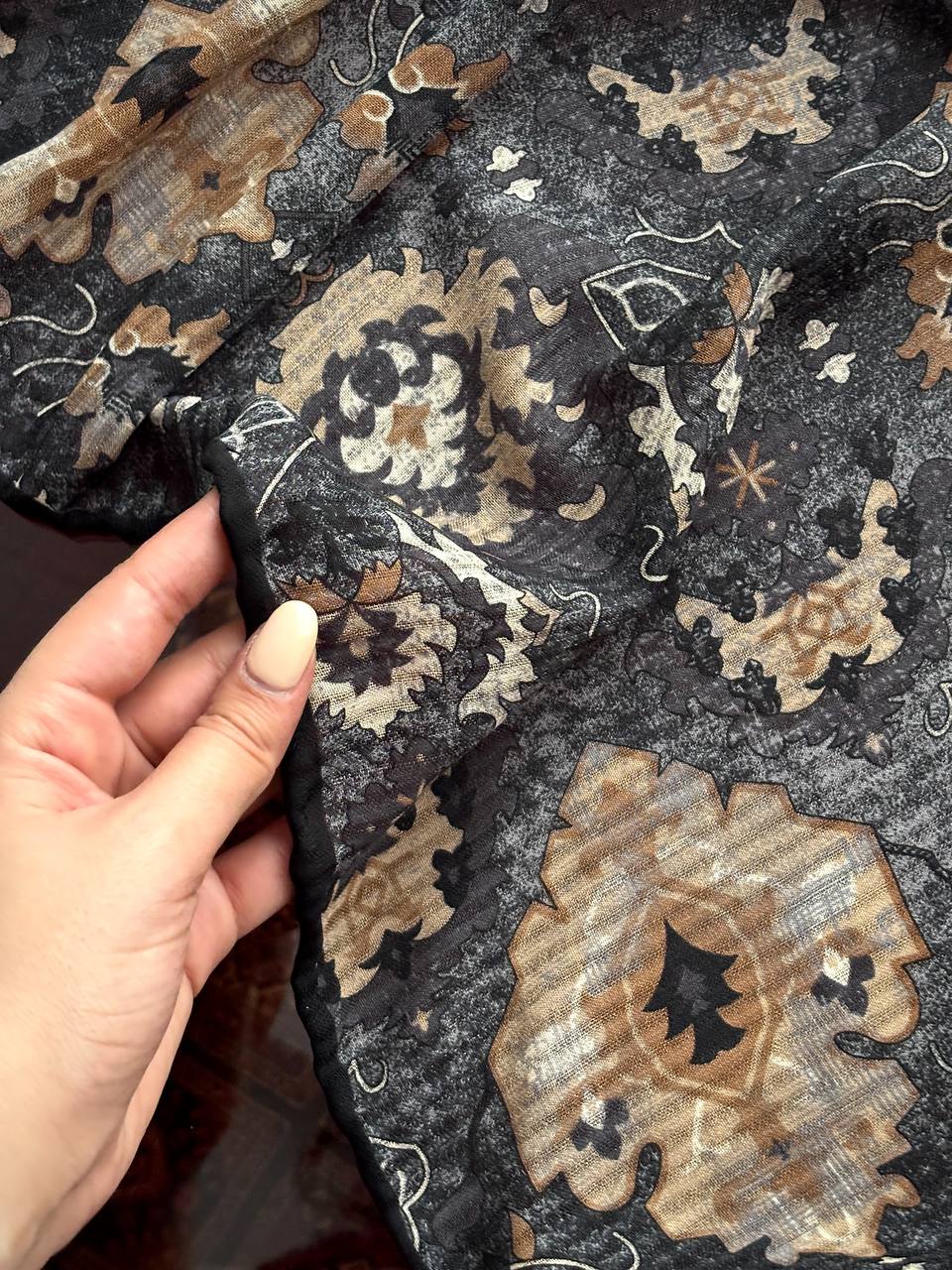 روسری نخی اسکالر دست دوز چاپ خیس