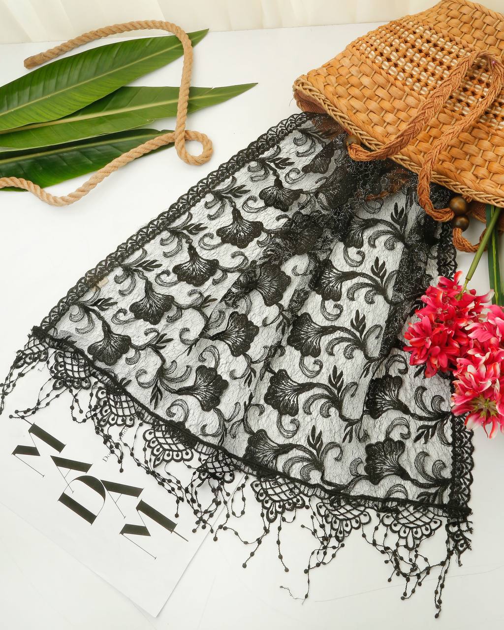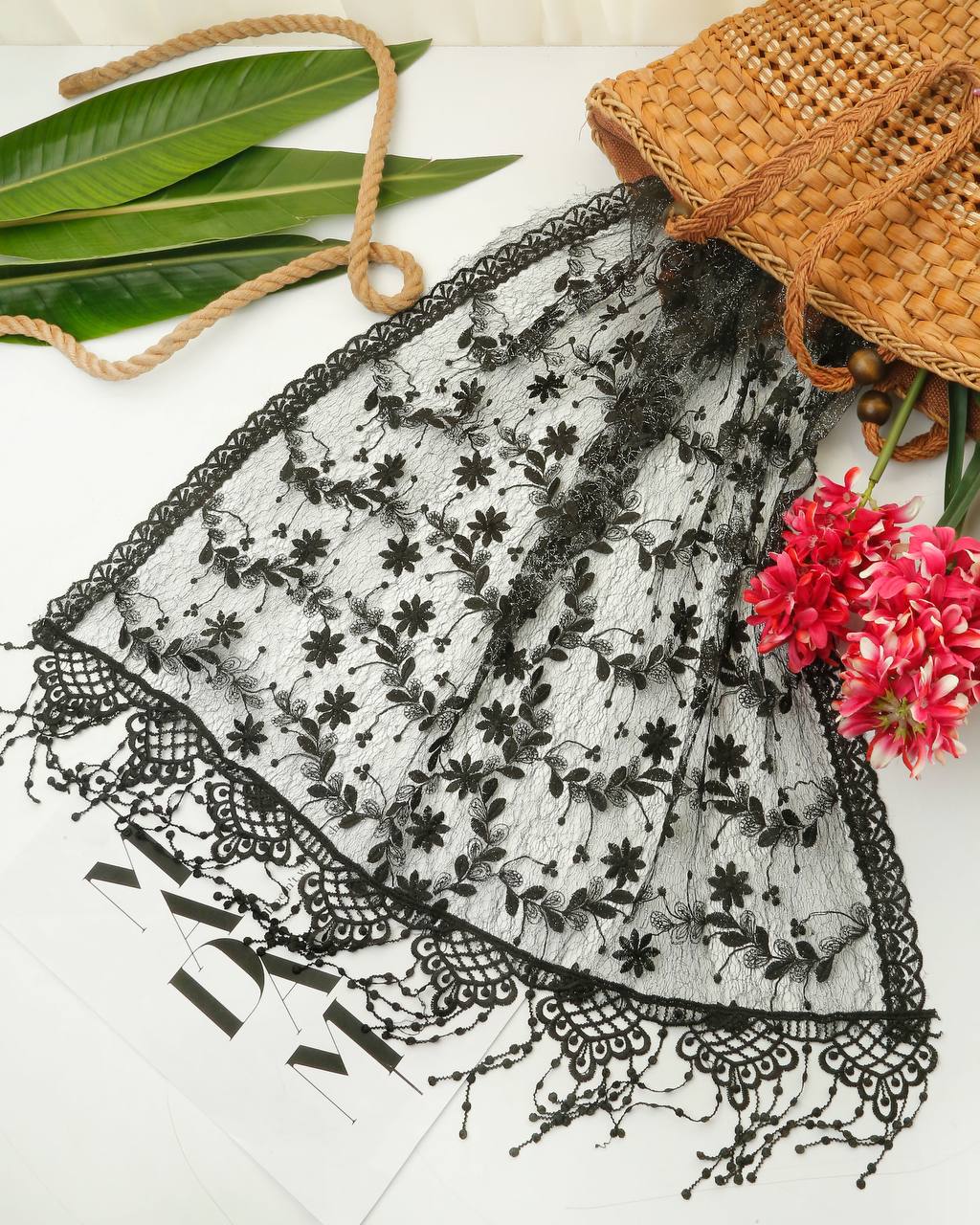 شال مجلسی مشکی مزونی وارداتی قواره 200x75 طرحبندی عالی/8 طرح جین 8 تایی قیمت عمده 498000 تومان @Muge admin +989306869046 R.un