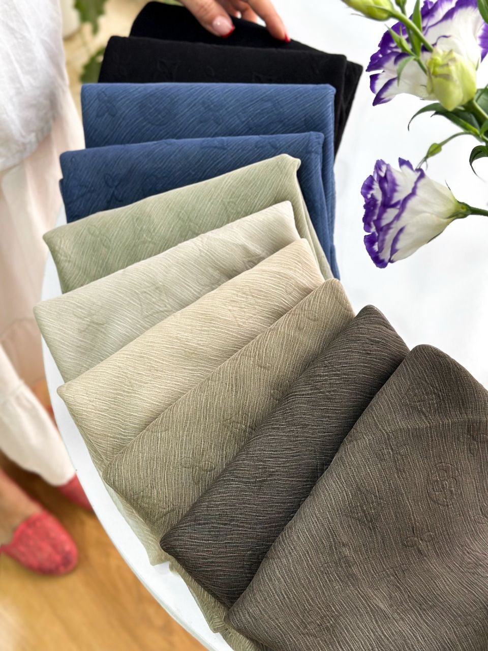 شال مجلسی حریر مارک وارداتی قواره 200x75 رنگبندی عالی/10رنگ جین 10 تایی قیمت عمده 568000 تومان @Muge admin +989306869046 M.d.l