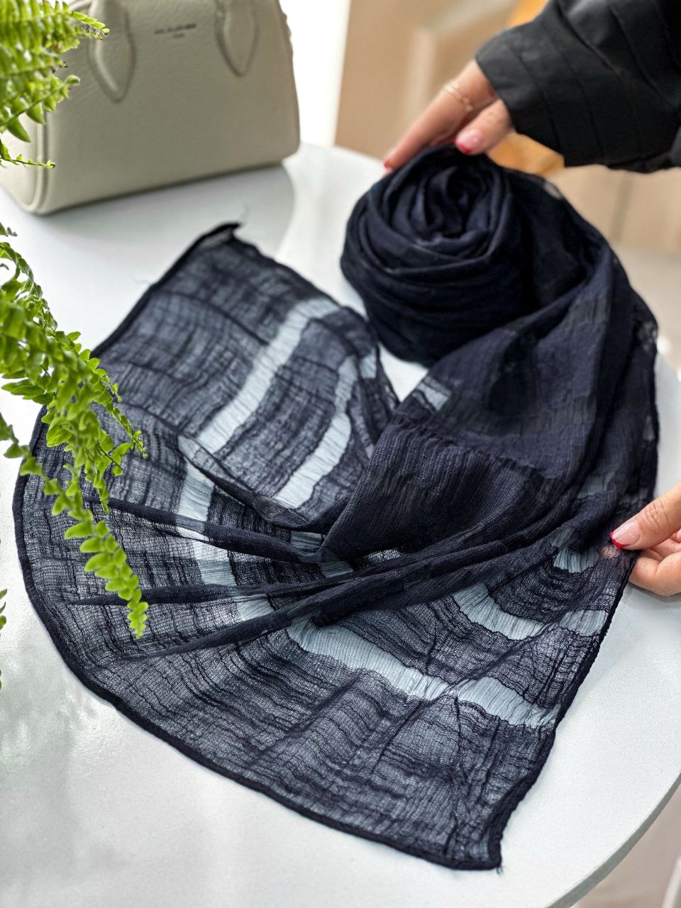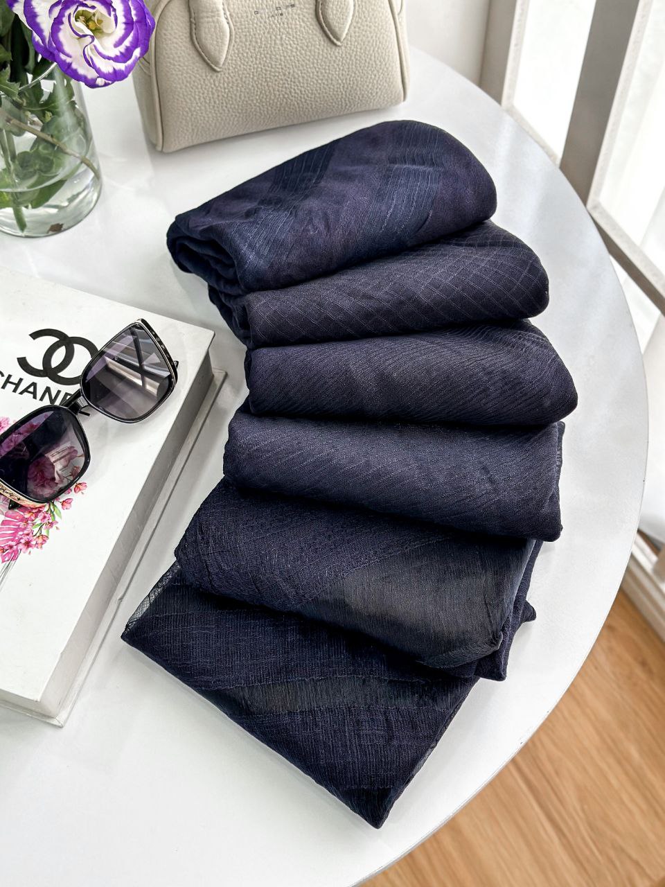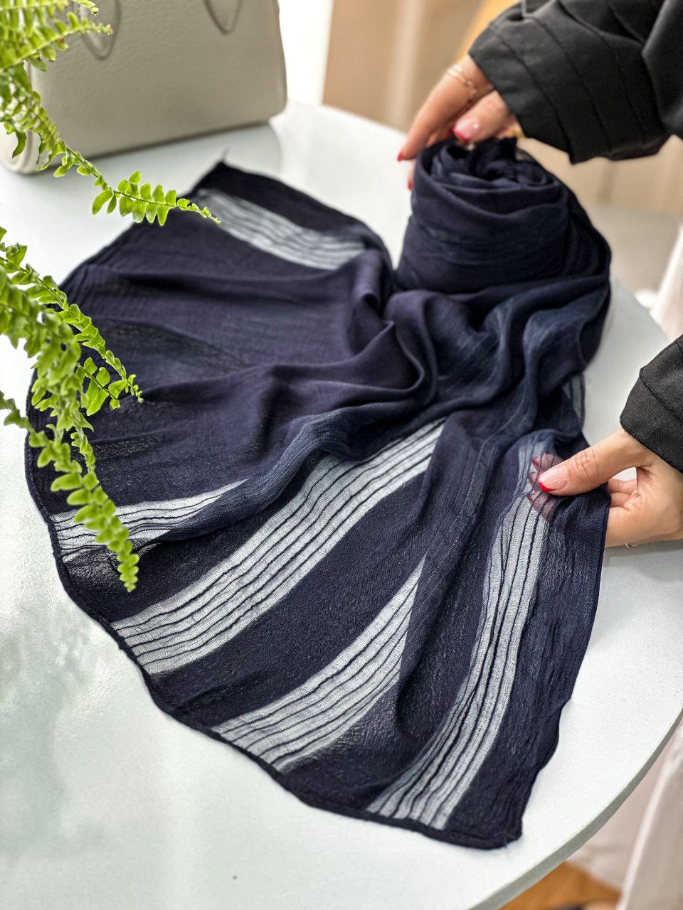 شال مجلسی سورمه ای وارداتی قواره 200x75 طرحبندی عالی/6 طرح جین 6 تایی قیمت عمده 698000 تومان @Muge admin +989306869046 M.d.l
