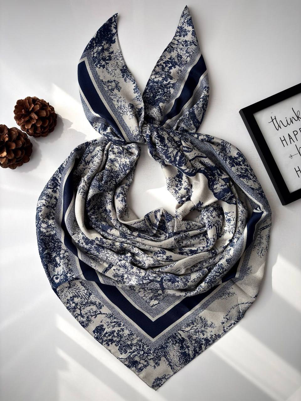 روسری نخ نیلا دست دوز چاپ خیس/فروش عمده