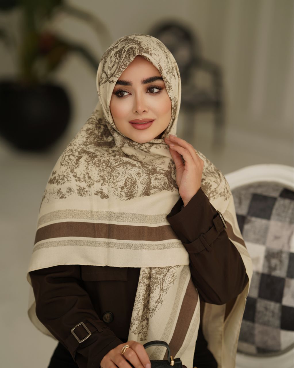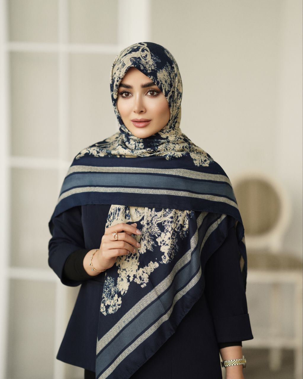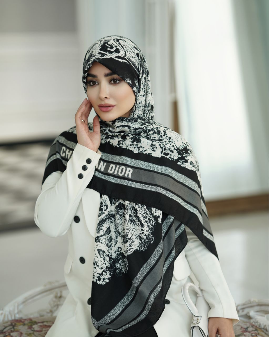 روسری نخی سیا اسکارف دست دوز چاپ خیس