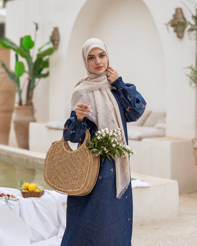 روسری نخ نیلا دست دوز چاپ خیس /فروش عمده